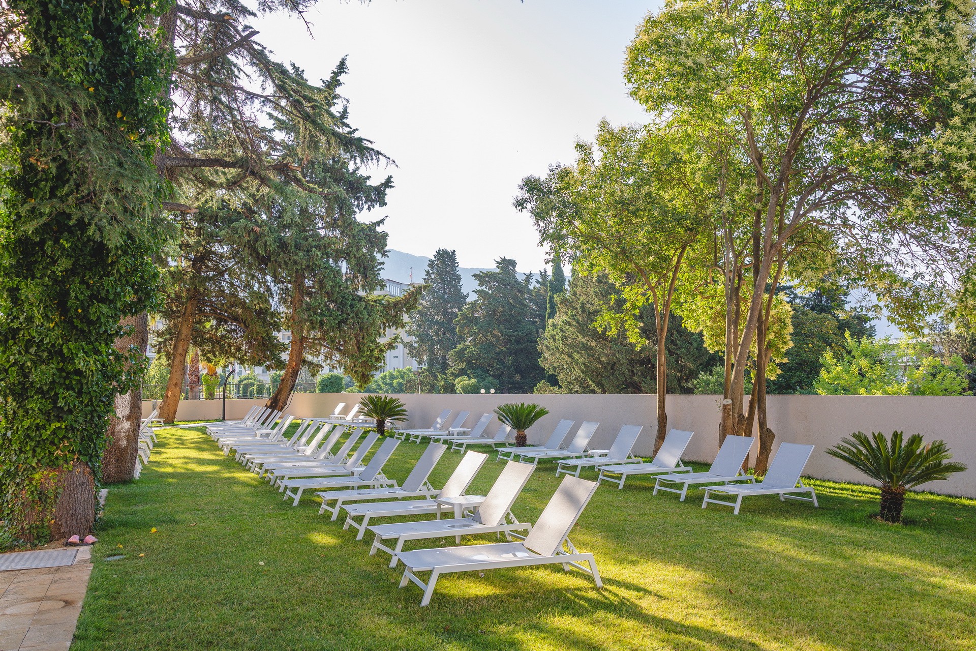 Less then 100 m away from the hotel, on one of the most beautiful beaches of Mediterranean we have a stretch 55 m which is equipped with 200 sets of two sunbeds and sun umbrella.
